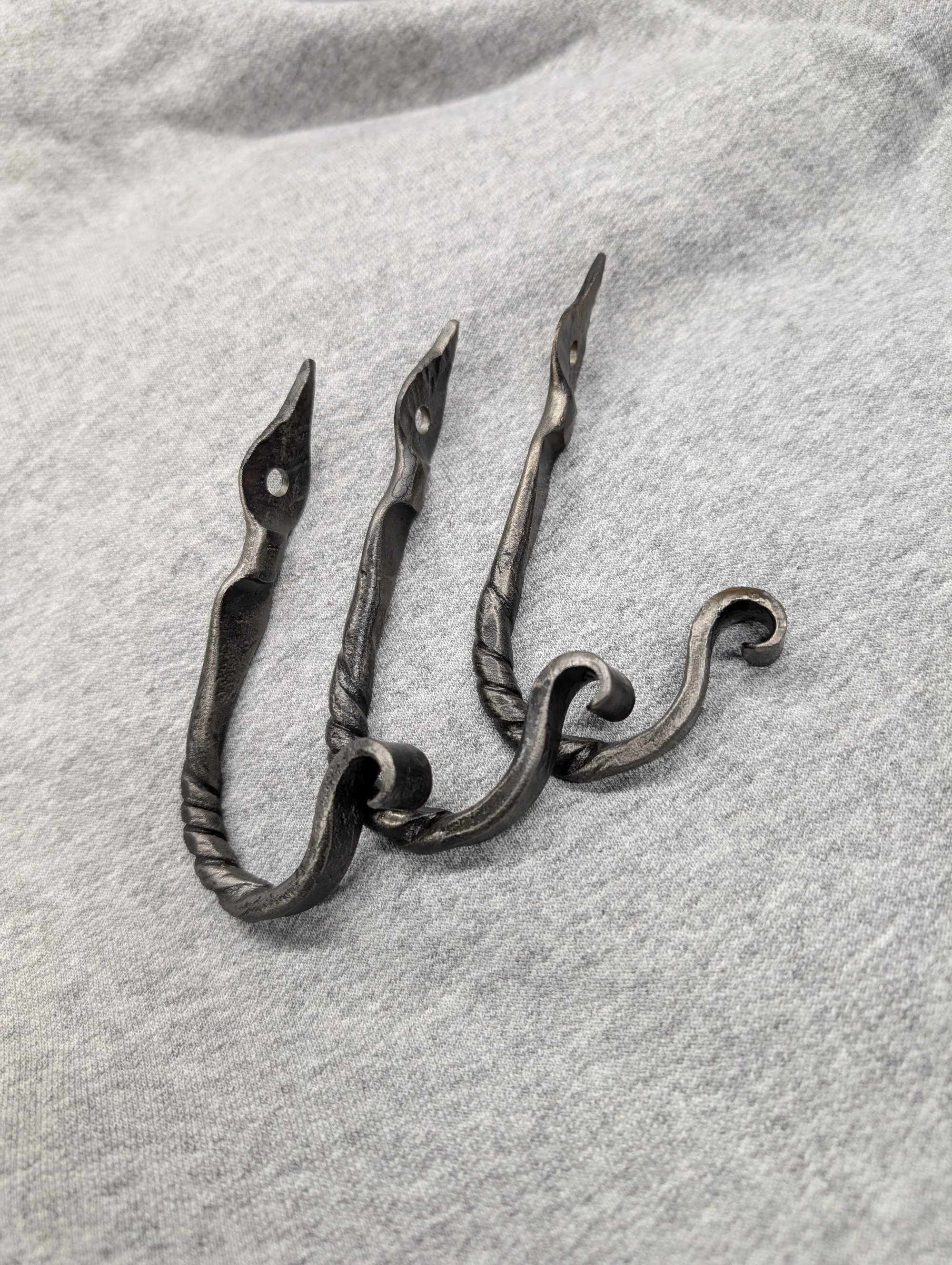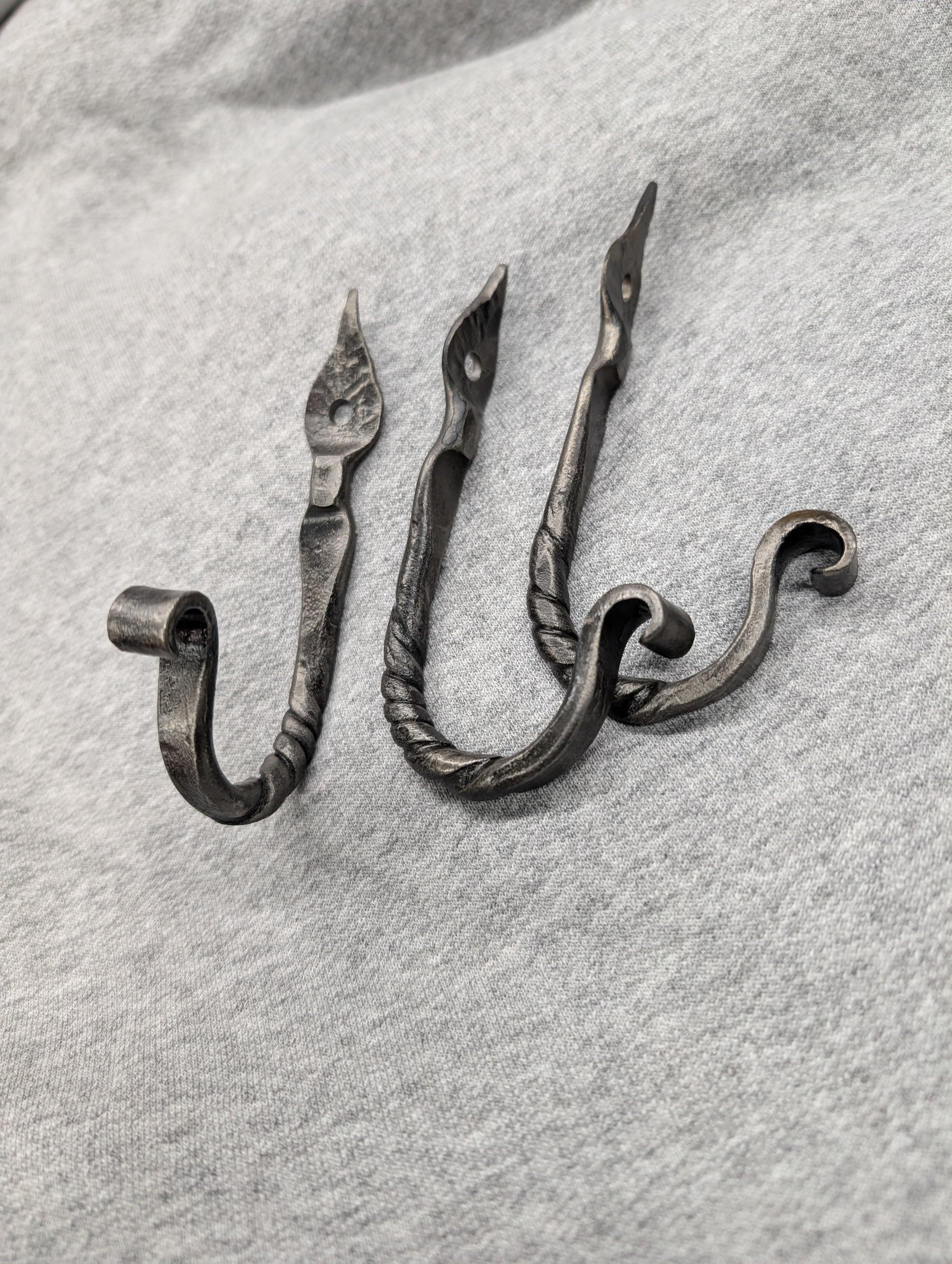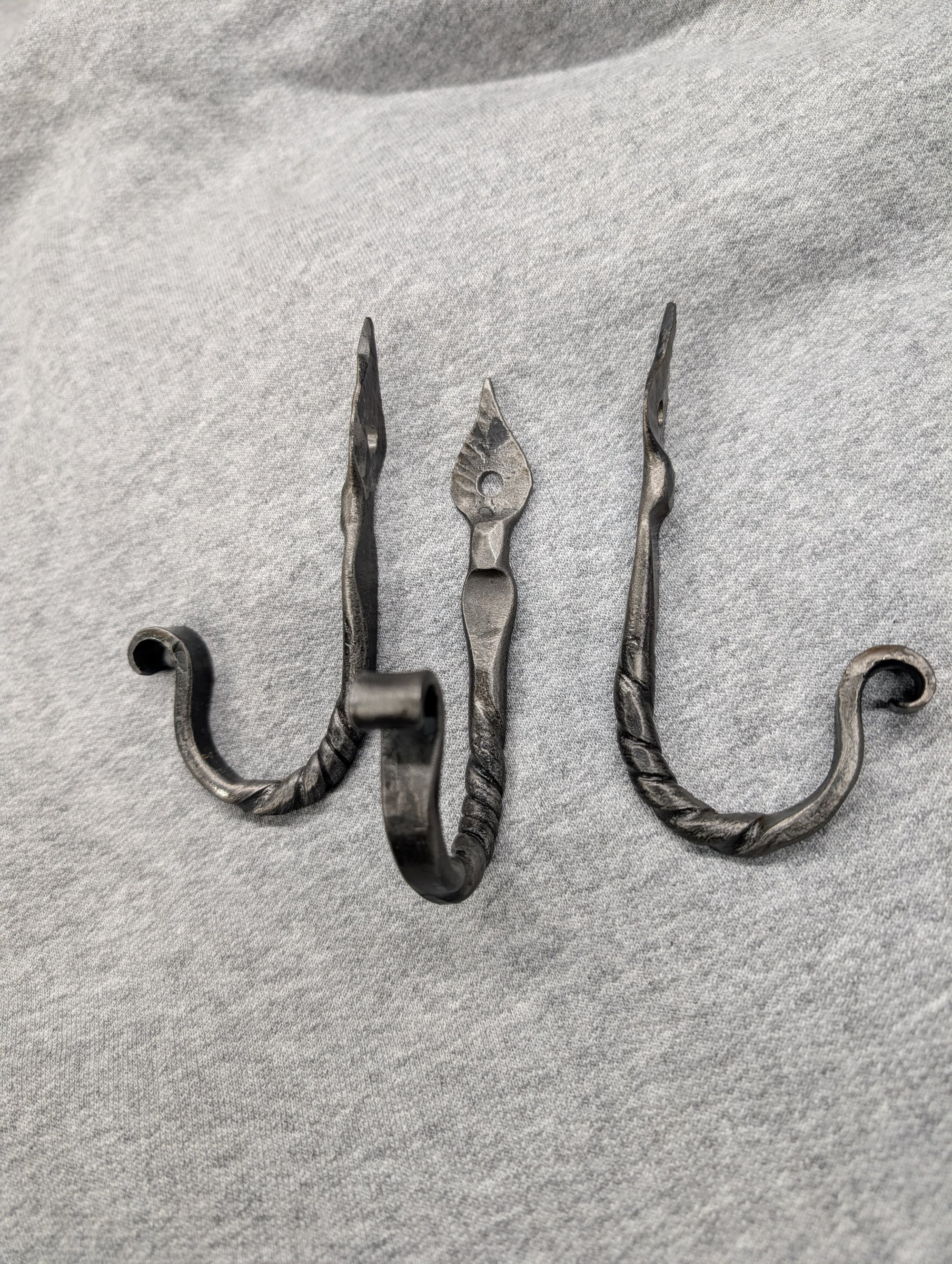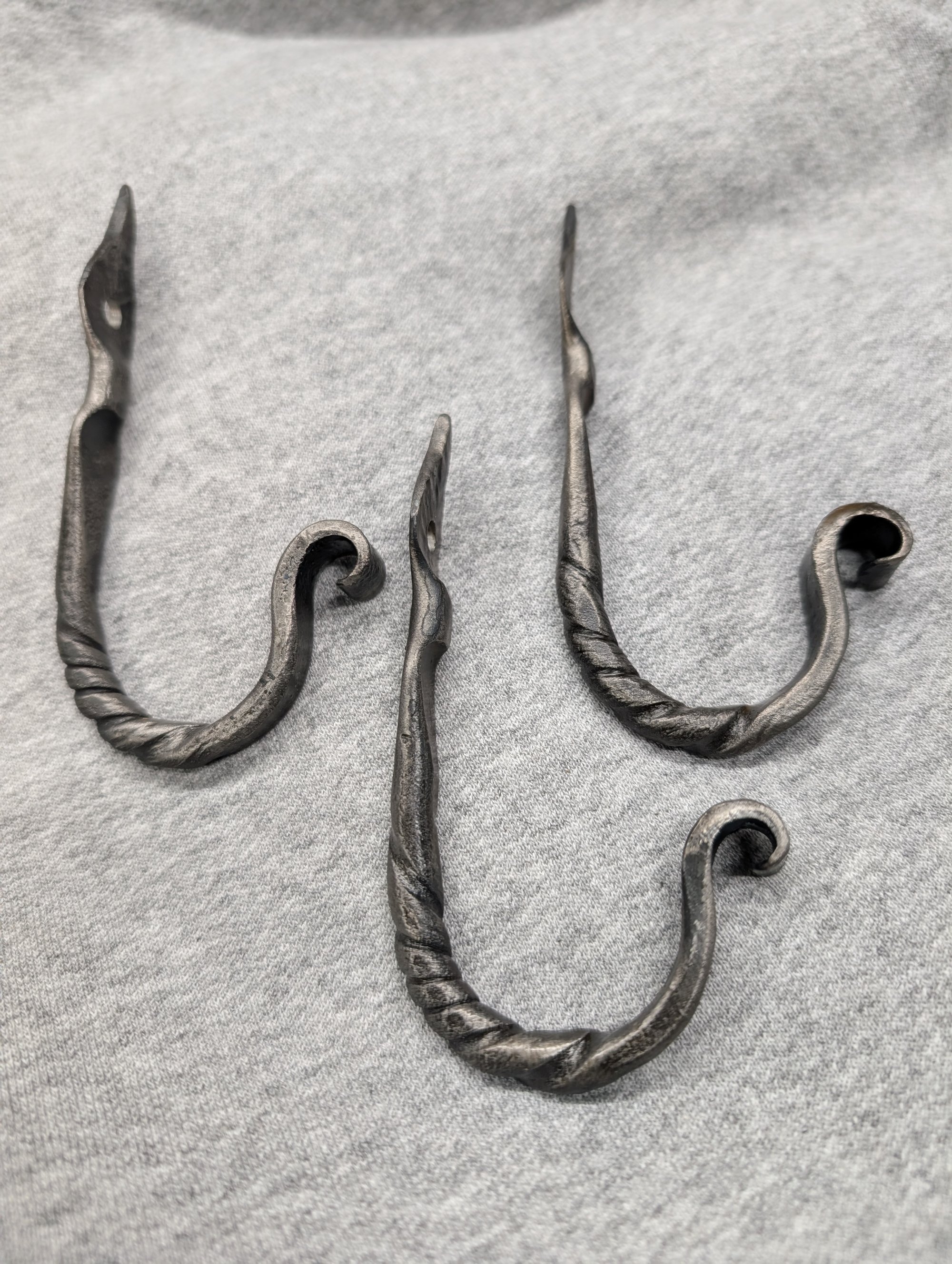 Hand forged j hooks are perfect for everyday hanging around. Mild steel with a wax finish. 4.75 inch tall with a hook width of 1.25"